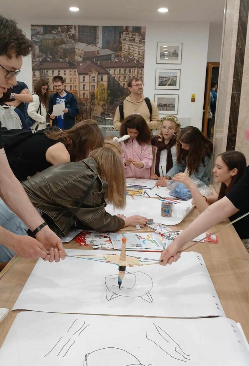 Studenci SKN PSYCHE skupili się na znaczeniu mikro-interakcji społecznych oraz twórczości, kreatywności i zabawy dla budowania poziomu szczęścia. Gościom Nocy Muzeów proponowali krótkie ćwiczenia twórcze i integracyjne, w tym wspólne rysowanie z użyciem Rope Pullera® - drewnianego uchwytu, pośrodku którego umieszony jest marker, a po bokach przywiązane są liny dla graczy (gracze trzymając za liny sterują uchwytem, a tym samym markerem i mogą wspólnie rysować).