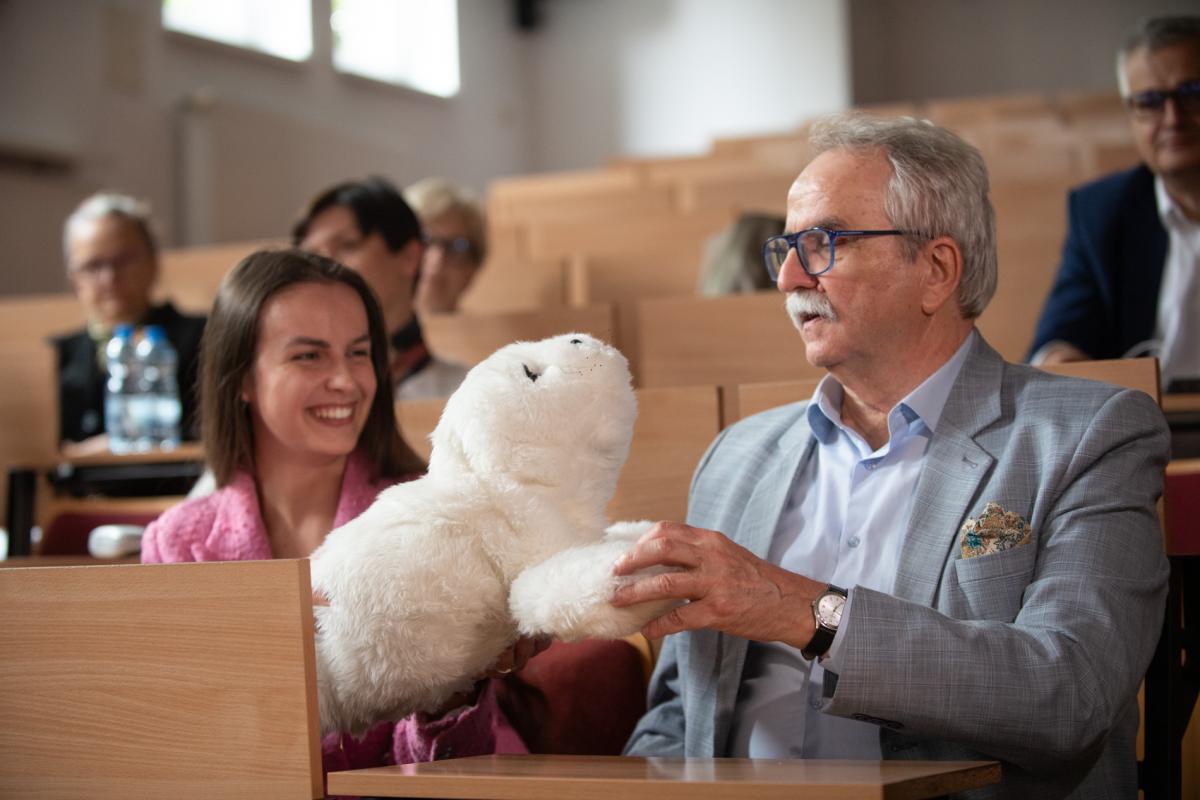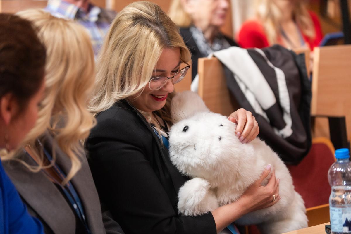 Foka PARO, interaktywny robot terapeutyczny, wykorzystywana jest m.in. w pracy z osobami starszymi oraz pacjentami z demencją i zaburzeniami lękowymi. Jej obecność na konferencji nie tylko wzbudziła ciekawość, ale także zaprosiła do refleksji nad miejscem empatii, emocji i relacji w zautomatyzowanym świecie społeczeństwa 5.0.